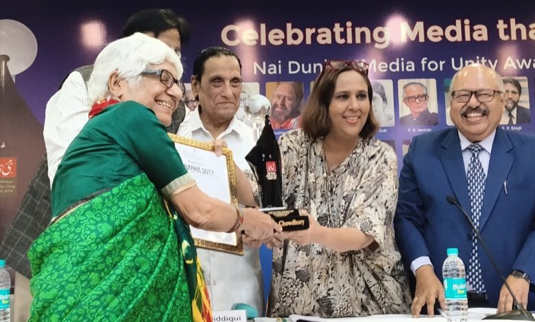 The Nai Dunia Foundation on 18 th April organised an outstanding event at the India International Centre and presented prestigious ” Media For Unity Awards” to twelve outstanding journalists, theatre director, authors, filmakers, and Cartoonist.