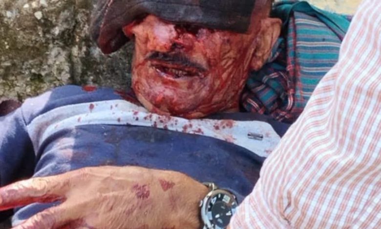 There is panic all around. The person injured grievously on the face was profusely bleeding with several wounds. His eyes and forehead is injured seriously.