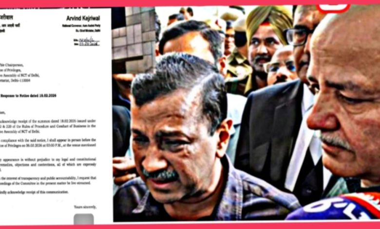 Responding to the chairman of privileges committee Arvind Kejrival wrote : I acknowledge receipt of the summon dated 18.02.2026 issued under Rule 172 8: 220 of the Rules of Procedure and Conduct of Business in the Legislative Assembly of NCT of Delhi.