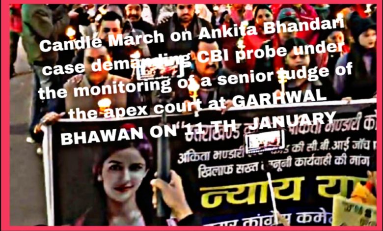 The biggest representative social organisation of Garhwalies, Uttarakhand in the national capital formed 102 years ago in Queta Pakistan with its headquarter Garhwal Bhawan, Panchkuian Road in Delhi is organising a massive candle march at the GB precincts on 11 th January from 6 PM onwards to demand the CBI probe in Ankita Bhandari case, a protracted demand of Uttarakhandies since the day the 19 year old innocent girl of Shrikot village , Pauri Garhwal was first sexually assaulted, asked to render extra services to a VIP and on denying was brutally murdered and thrown in Chila canal.