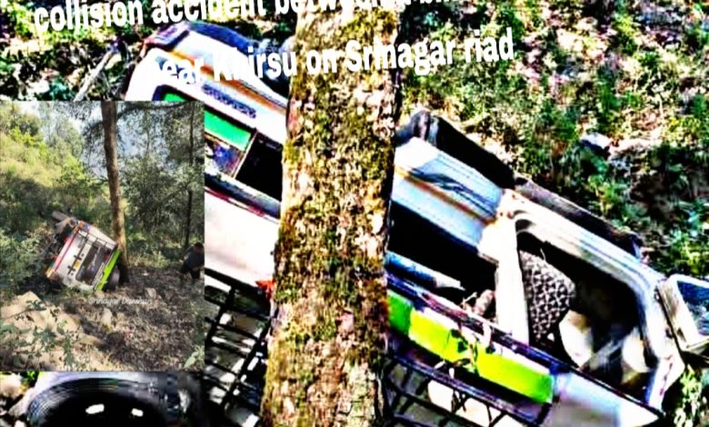 A serious accident has occured near Khirsu on Srinagar road in Pauri Garhwal where a speeding Max and a bike collided with each other from the front with Max plunging in a deep gorge injuring eight occupants some severely.