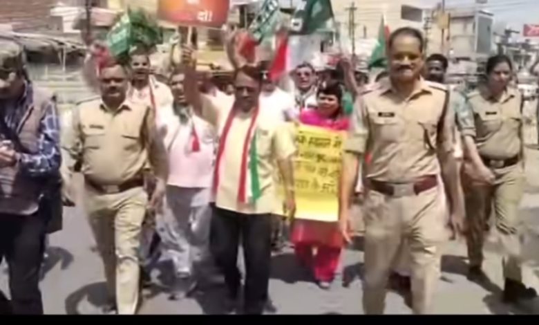 Hundreds of Uttarakhand Kranti Dal protestors marched to the Roorkee BJP office to gherao the BJP leader Gautam who has allegedly been named as the VIP in Ankita Bhandari case by the former BJP MLA from Haridwar Suresh Rathore and audio posted in social media by actor Urmila Sanawar who was earlier close to him while in BJP now a rebel.