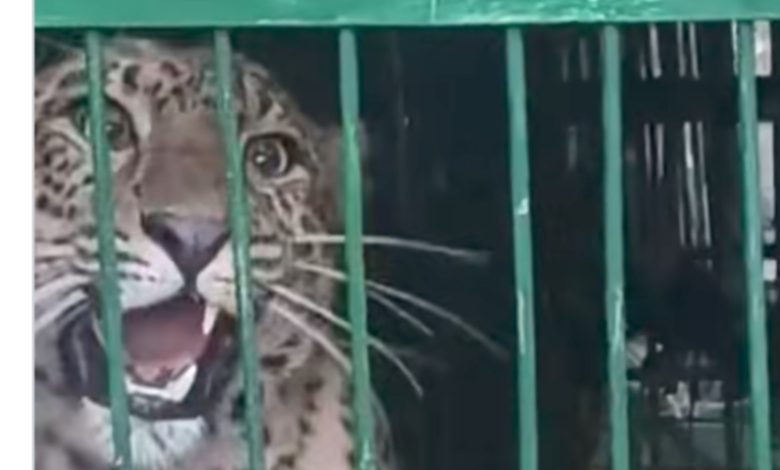 Maneater leopard captured in iron cage by the forest department at Dandriyal village in Pokhra, Pauri Garhwal