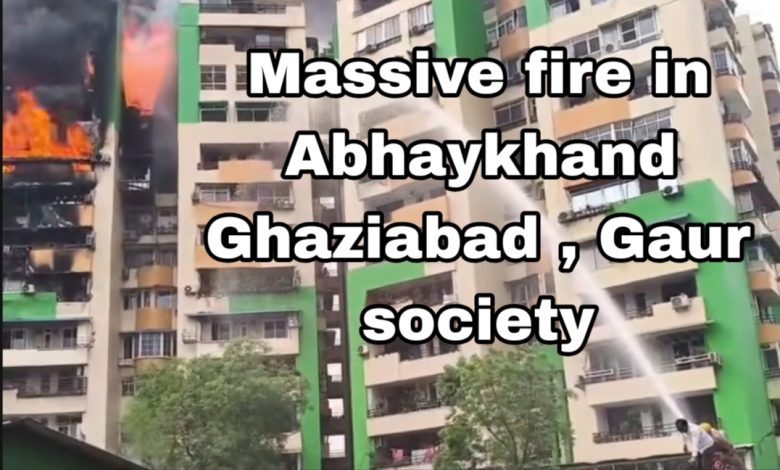 A massive fire broke out in the ninth floor residential flat in Abhay Khand , Gaur Green Avenue society damaging majorly another six floor downwards creating panic and fear in the entire society with people screaming for help running helter skelter with majority of the residents coming down hurriedly.