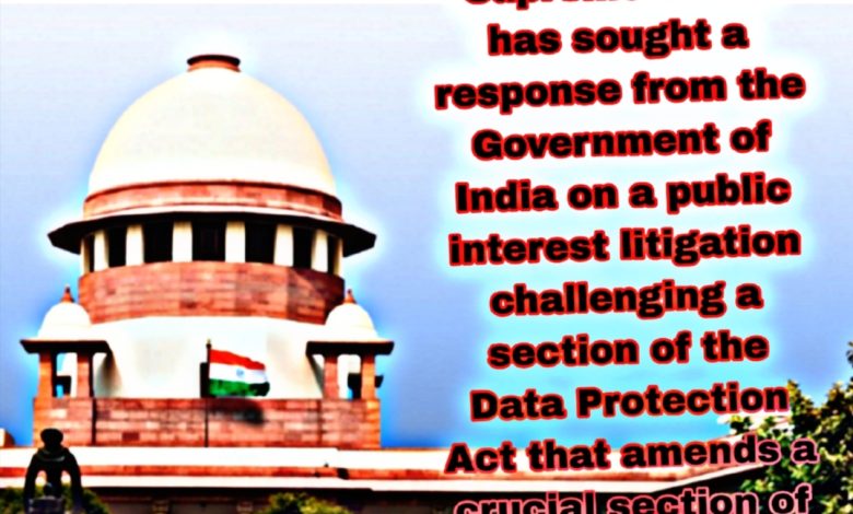 The Supreme Court has sought a response from the Government of India on a public interest litigation challenging a section of the Data Protection Act that amends a crucial section of the RTI Act.