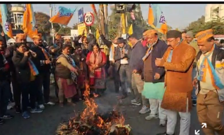The protestdemonstration and effigy burning took place at Lansdowne chowk amid slogans criticizing the BJP government and Swami Darshan Bharti.