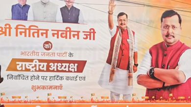 देहरादून भाजपा कार्यालय के बाहर भाजपा के नए राष्ट्रीय अध्यक्ष को बधाई देने वाला एक विशाल बैनर/बोर्ड से उत्तराखंड भाजपा प्रभारी की तस्वीर गायब