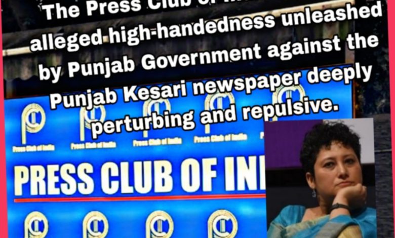 The Press Club of India finds the alleged high-handedness unleashed by Punjab Government against the Punjab Kesari newspaper deeply perturbing and repulsive.