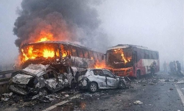 Thirteen heartwrenching tragic deaths on national highway after several buses and vehicles collided with each other