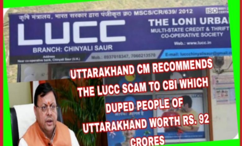 The Uttarakhand chief minister Pushkar Singh Dhami has recommended to India’s premier investigating agency CBI for the thorough probe into the LUCC scam , a credit and thrift society of Loni, Uttar Pradesh which has duped thousands of investors of Uttarakhand of worth Rs. 92 crores under the guise of doubling their deposit in short time.