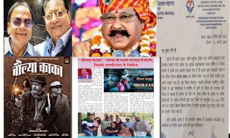 The cabinet minister of Uttarakhand looking after PWD, Tourism, Irrigation, Rural Works, Panchayti Raj, Water shed, Culture, Flood Control, Indo Nepal River Projects departments of Government of Uttarakhand has recommended the Garhwali movie produced by renowned and highly experienced seasoned producer Shiv Narayan Singh Rawat titled “Baulya Kaka” for making it Tax Free. The cabinet minister Satpal Maharaj has written a letter to the Uttarakhand chief minister Pushkar Singh Dhami urging to make it tax free as the movie ran house full in theatres of Dehradun, Roorkee, Kotdwar, Kashipur , Delhi etc due to a healthy script and being of high quality in all respects having been highly appreciated by large number of audience. The movie with an outstanding script , mesmerising songs , music, important lyrics and exemplary scenic beauty has knit three different stories highlighting the plight regarding massive exodus to cities , infiltration of outside persons in large numbers disturbing the demography and prevailing evil of massive liquor consumption etc to send across a message to improvise and make Uttarakhand a healthy place to live in popularly known as the Devbhoomi, ABODE OF GODS. While recommending the Garhwali movie for making it Tax Free the minister Satpal Maharaj said that he had received lots of recommendations from other social organisations in this regard too. The producer of the movie Shiv Narayan Singh Rawat said that a show is being arranged in Dehradun for the exhibition / screening of this movie for all the ministers, hopefully CM and bureaucrats to view it and feel convinced themselves that Bolya Kaka indeed is a marvellous movie in Garhwali dialect. The work on his next Garhwali movie ” Kandali” and a hindi movie are to commence after March. Shiv Narayan Singh thanked Satpal Maharaj from the core of his heart and said that the speaker Uttarakhand assembly who saw the movie at Kotdwar was also impressed and is hopefully recommending it for Tax Free in the near future. The movie’s main lead was renowned Bollywood actor versatile Hemant Pandey who was the star attractions of this movie from beginning to an end with his centralised character if a PARANOID UNCLE ” BAULYA KAKA leaving a remarkable impression in the minds and hearts of the audience wherever it was released.